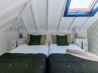 Esta espaçosa moradia de tipologia T5, dispõe de 5 quartos, 2 casas de banho modernas e 180 m² de área útil. A elegante sala principal destaca-se pelos tetos altos, uma lareira decorativa e amplas janelas que inundam o espaço de luz natural. No piso superior, o mezanino proporciona uma área adicional de estar, complementada por três quartos, um escritório e espaços de arrumação. A cozinha moderna, totalmente equipada, possui bancadas em pedra natural e um balcão ideal para refeições informais. No rés-do-chão encontram-se dois quartos, um deles com closet, e uma casa de banho espaçosa. O ar condicionado está presente em toda a casa, garantindo conforto durante todo o ano.