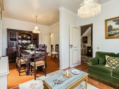No rés-do-chão, após contemplar um amplo hall de entrada aberto para o piso superior, com vitrais coloridos nas suas enormes paredes, e uma salamandra a pellets que aquece toda a parede interior da casa, encontramos a zona social, composta por uma ampla sala de estar com lareira em mármore, com acesso a uma varanda, uma enorme sala de jantar, uma casa de banho social adjacente a uma cozinha igualmente ampla, servida por uma despensa e uma área coberta com acesso direto ao exterior. A casa dispõe ainda de gás natural canalizado.