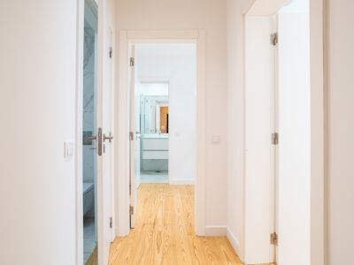 O apartamento dispõe de dois quartos, sendo um em suite com roupeiros embutidos, proporcionando o espaço de arrumação que toda a família necessita.