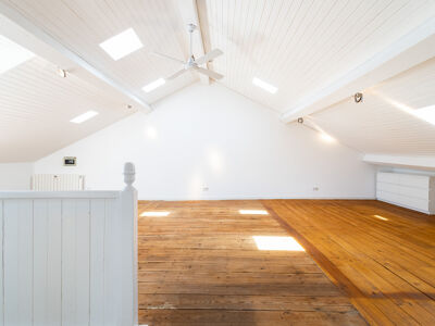 O apartamento encontra-se em ótimo estado de conservação. As águas furtadas proporcionam um ambiente acolhedor, com tetos inclinados, chão de tábua corrida, excelente exposição solar, luz natural abundante e pormenores que refletem o caráter lisboeta.