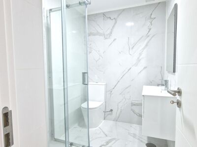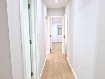 A atenção ao detalhe é evidente em toda a propriedade: a cozinha está equipada com móveis brancos elegantes e aparelhos modernos, incluindo forno, placa, exaustor, máquina de lavar louça, máquina de lavar roupa, termoacumulador e combinado. A caixilharia lacada a branco com vidros duplos garante isolamento acústico e eficiência energética, enquanto os tetos falsos com luzes LED embutidas proporcionam um ambiente contemporâneo e sofisticado no WC, cozinha, sala, hall e quartos.