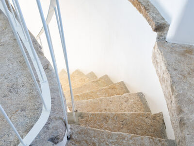 Ao entrar, encontrará uma ampla sala de estar, com cozinha integrada, onde as características originais do moinho, como o chão e os arcos em pedra, se fundem na perfeição com os acabamentos contemporâneos. A cozinha totalmente equipada é de grande funcionalidade e convida à criatividade. Um WC perfeitamente integrado no espaço, completa este piso. A escadaria em pedra conduz ao piso superior, onde se encontra um quarto amplo e com grande luminosidade, janelas com uma vista abrangente, com portadas em madeira, roupeiros embutidos, que garantem todo o conforto.