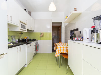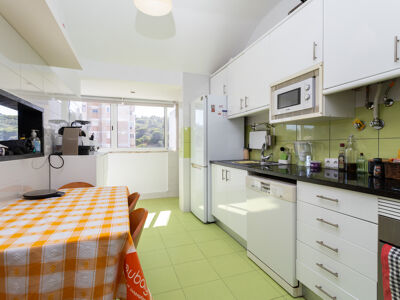 A cozinha está totalmente equipada com fogão, forno, frigorífico, esquentador, máquina de lavar loiça e máquina de lavar roupa, oferecendo assim toda a conveniência que necessita. O apartamento, que se encontra em bom estado, está pronto a habitar, permitindo também uma eventual atualização ao gosto do comprador.