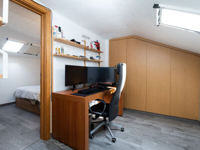 Oferecendo conforto adicional, o apartamento está equipado com ar condicionado na sala e dispõe de uma pequena varanda, ideal para momentos de relaxamento. Os espaços interiores incluem uma sala acolhedora, um quarto, um escritório e ainda uma divisão adaptável aos seus interesses pessoais, seja para arrumos ou outra finalidade. Tem também uma despensa e uma divisão extra, que poderá servir para arrumos.