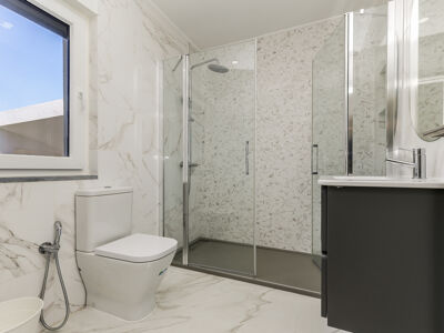 A segurança é uma prioridade com a instalação de sistemas de CCTV. No exterior, uma vastidão de possibilidades se apresenta, com jardim, varandas e um amplo terraço, todos eles perfeitos para desfrutar dos longos dias de verão. A piscina privada, com um wc de apoio, é o palco ideal para momentos de lazer e diversão em família.