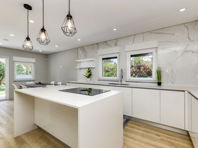 Com uma área generosa de 374,35 m² e inserida num lote de 2085,48 m², esta moradia totalmente renovada é uma verdadeira joia rara no mercado. O interior acolhe-o com quatro espaçosos quartos e sete casas de banho, oferecendo privacidade e elegância inigualáveis a todos os membros da família e convidados. A sala de estar, adornada com uma charmosa salamandra, promete momentos inesquecíveis de relaxamento e convívio.