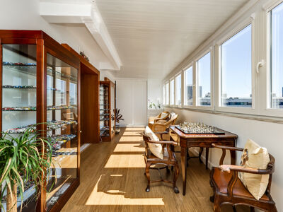 Este penthouse, com a sua atmosfera residencial exclusiva, é também acolhedor para crianças e animais de estimação, tornando-se o lar ideal para toda a família. O ar condicionado assegura conforto em todas as estações, enquanto a envolvência urbana e o acesso imediato a serviços essenciais tornam a localização desta propriedade um tesouro raro.
