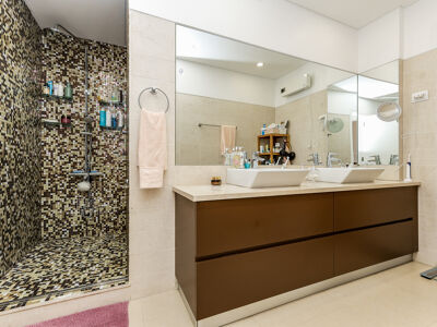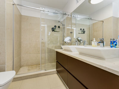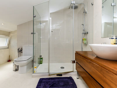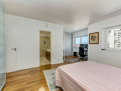 Com um total de quatro quartos com casa de banho privativa e closet, este imóvel providencia espaço e privacidade, com cada um dos quatro quartos elegantemente desenhado para maximizar conforto e tranquilidade. O espírito prático deste duplex é destacado pelas cinco casas de banho, garantindo conveniência e comodidade incomparáveis para famílias numerosas ou receber convidados.