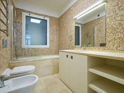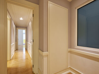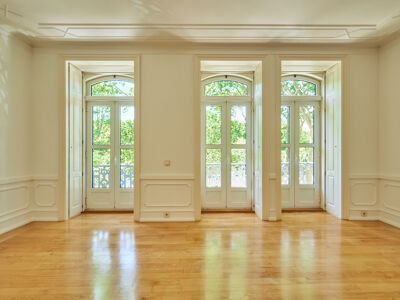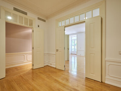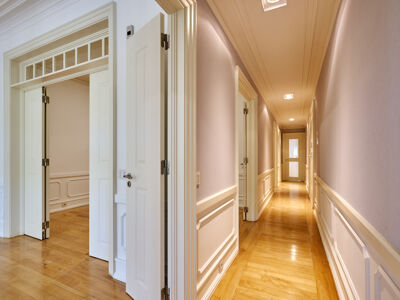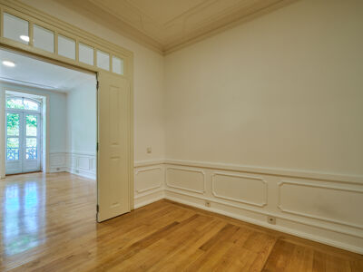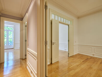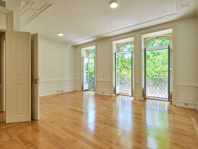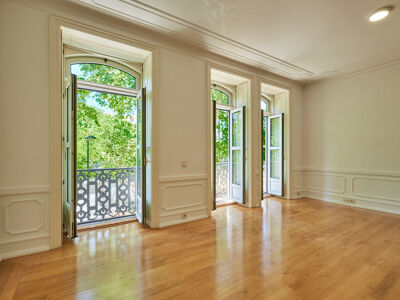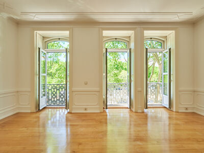 A orientação solar perfeita permite sentir o sol enquanto aprecia a vista nas bonitas varandas da sala, viradas a poente, com vista para as árvores da Avenida da Liberdade e para o Parque Eduardo VII.