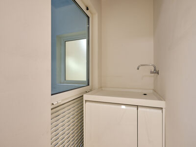 A cozinha tem ainda zona de lavandaria separada e existem 3 casas de banho: a social à entrada, outra partilhada junto aos quartos e casa de banho privativa na suite com closet.
