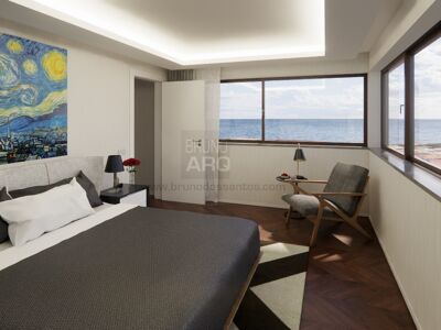 No piso superior, uma master suite com closet, uma varanda com vista mar e ainda três quartos e uma instalação sanitária.