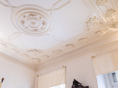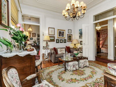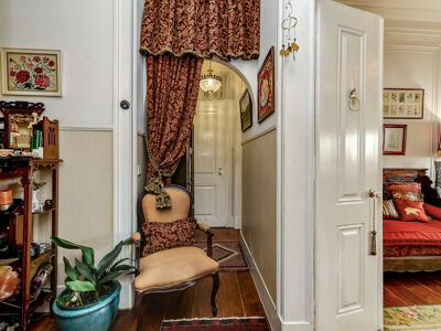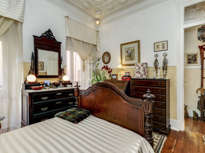 Logo à entrada, serás recebido por um amplo pé direito que proporciona uma luminosidade natural incomparável, iluminando o chão de tábua corrida que serpenteia por toda a casa. Os tetos trabalhados originais e as portas com bandeirolas adicionam um toque de elegância e história.