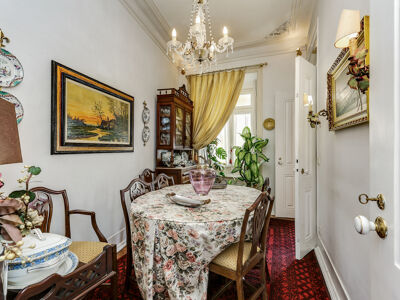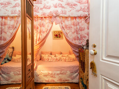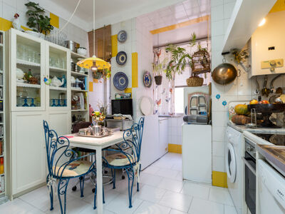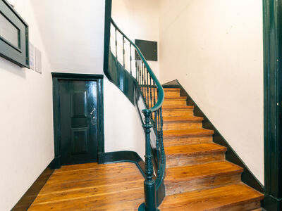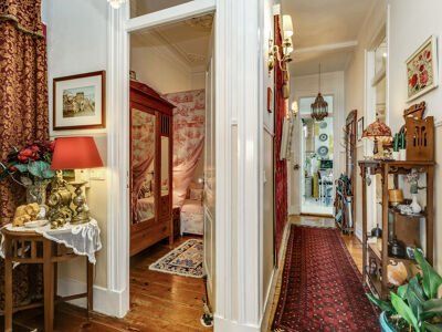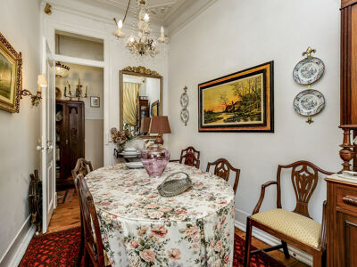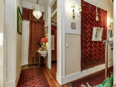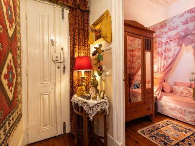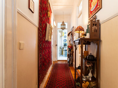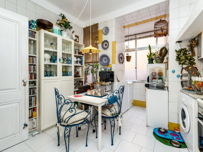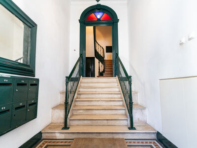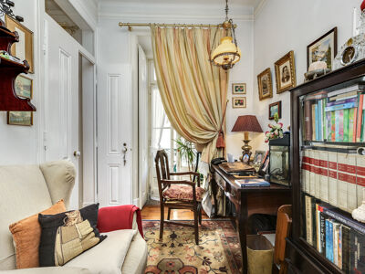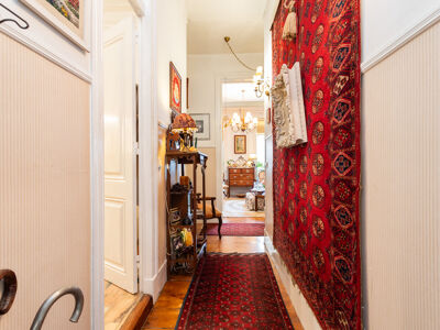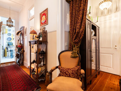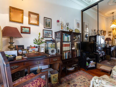 A disposição do apartamento é ideal , começando com o hall que conduz, do lado direito, a uma espaçosa sala de estar e uma sala de jantar perfeita para momentos de partilha e convívio. Ao lado, um escritório prático com roupeiro embutido complementa o ambiente. As janelas amplas, ainda com molduras de madeira mas modernizadas com vidro duplo, oferecem uma vista serena e desafogada para a pitoresca travessa.