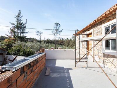 Subindo ao primeiro andar, ficam situados os três quartos, que atualmente se encontram em estado de reconstrução. Pode optar por duas suites ou dois WCs ao seu gosto. A partir deste piso, poderá aceder a um magnífico terraço que oferece uma vista encantadora para a sua futura propriedade.