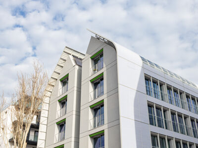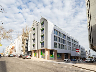 O edifício tem duas entradas, viver no vila de estar junto ao rio inspirado pela luz encantado com a vista num dos lugares mais especiais da cidade onde Renzo Piano arquiteto italiano distinguido com prémio Pritzker decidiu desenhar um projeto de referência a localização em Marvila zona com restaurantes de conceito cervejarias de autor galeria de artes e bares.