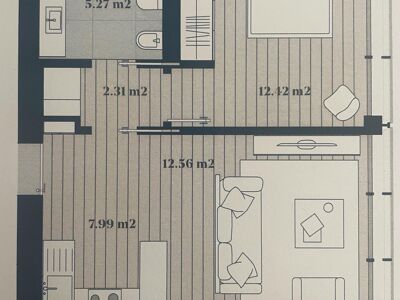Este óptimo apartamento situa-se no segundo andar de um edifício com elevador, com certificação energética A e é composto por sala e kitchenette conjuntas com 20 m², quarto 12.30 m² e WC 6 m² ,com 1 lugar de estacionamento e arrecadação.