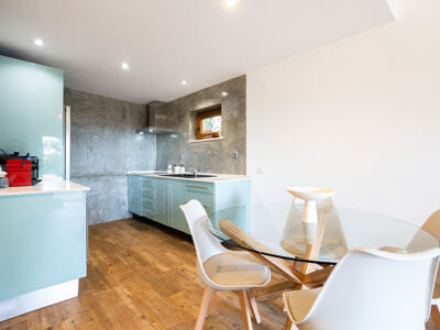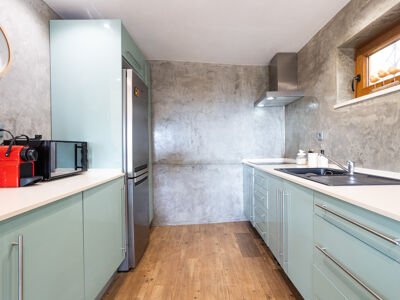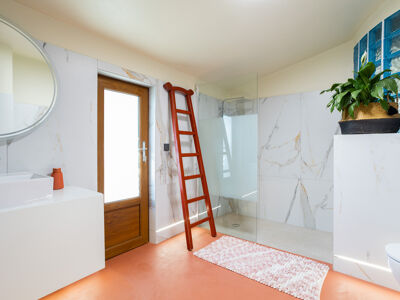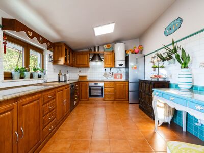 Este refúgio ecológico é também um exemplo de sustentabilidade, com painéis solares, furo próprio e um depósito de água de 5.000 litros. A classificação energética B e a ausência de gás refletem um estilo de vida moderno, eficiente e responsável.