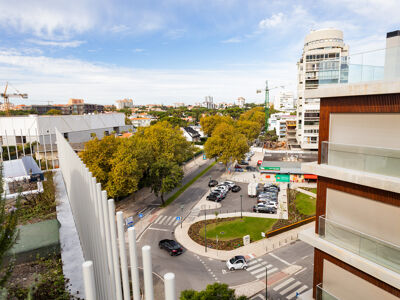 O imóvel inclui ainda seis lugares de estacionamento, sendo dois em garagem e quatro em box privativa com 50 m², equipada com carregamento elétrico para viaturas. Conta também com uma arrecadação ampla com 11,2 m².