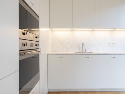 O apartamento apresenta acabamentos de luxo e um conjunto de equipamentos de alta qualidade. A cozinha está equipada com torneiras Quooker com água a ferver ou gelada instantânea e filtro, mobiliário SCIC, ilha com acabamento em Silestone e eletrodomésticos Gaggenau, incluindo placa de indução, frigorífico e máquina de café. Nas casas de banho, destacam-se as torneiras VOLA, chuveiros com efeito de chuva, toalheiros elétricos e autoclismos GEBERIT. Em toda a habitação encontrará pavimento radiante com sistema de aquecimento Uponor, estores elétricos reguláveis, iluminação LED, roupeiros com luz interior, interruptores JUNG e um avançado sistema de domótica KNX totalmente controlado através de smartphone.