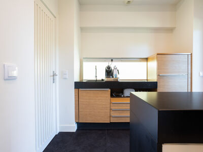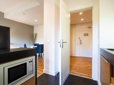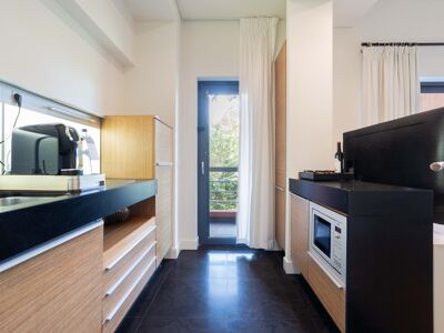 -Cozinha totalmente equipada e integrada no espaço social.