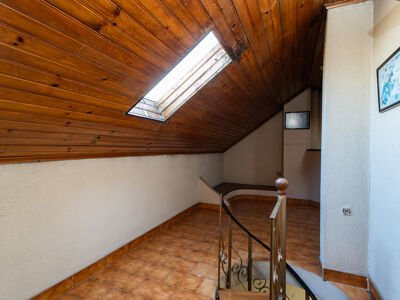 Uma das joias da coroa deste apartamento é o sótão, acessível através de uma escada em caracol. Este espaço adicional oferece a liberdade de criar um terceiro quarto e um confortável escritório, ideal para trabalhar a partir de casa.